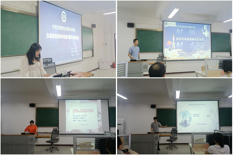 2022年国家级大学生创新创业项目立项主持人钟依恋、郭升应同学在论坛上分享了他们的项目申报历程,并利用个人的学习经历动员英语及商务英语专业学生积极参与“双创”项目申报,培养自己的实践动手能力。2022届优秀本科生毕业论文获得者代表胡子杨及陈远鸿在论坛上分享了他们的课题研究思路及研究途径。