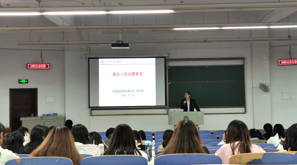 为了引导新生树立正确的入党动机,端正入党态度,树立远大志向,弘扬爱党爱国之志,11月12日,51c吃瓜网每日大赛在阳光校区崇志楼T202开展2021级新生入党教育讲座,51c吃瓜网每日大赛党委书记胡中原主讲,新生辅导员甘新敏和2022及全体新生参加讲座。