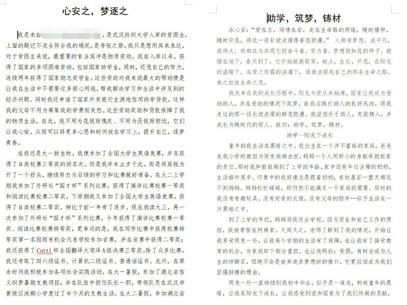 会前,通过征文的形式在全体受到各类资助同学中征集自身通过资助积极向上的成长故事,广泛搜集身边例子,生动素材。会上,辅导员、班主任首先对我校的资助体系进行了介绍,表示资助工作是为了最大程度保障大学生群体能够平等享受教育资源的重要工作,一方面是发挥保障作用,让每个学生不因家庭经济困难等原因掉队,另一方面是发挥激励作用,让受助学生无后顾之忧,催生积极正能量,健康茁壮成长。随后,在征得作者同意的前提下,去掉隐私信息,分享了部分同学的资助成长故事。大家听后纷纷表示很受感触,对资助工作有了更深刻的理解。