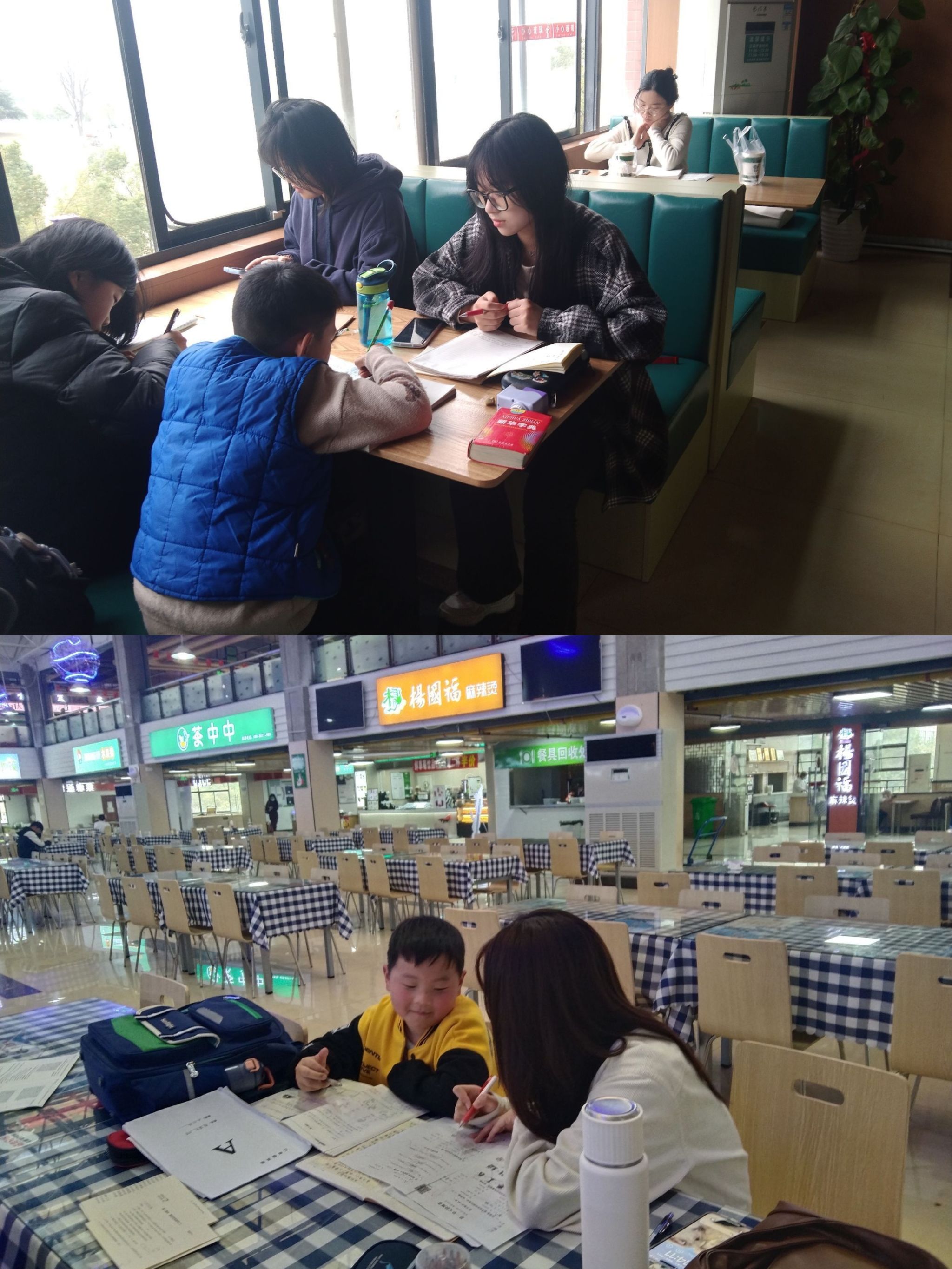 志愿者们利用周末时间辅导为食堂职工子女开展辅导,以耐心的态度、专业的知识解答小朋友们一个又一个的疑问,在休息时间与小朋友们谈心解闷,让他们即学到了知识,又放松了心情。志愿者与小朋友们互动频繁,拉近了彼此的距离,让他们感受到了学长学姐们的关爱。志愿者们以英语口语练习、语文作文讲解,学生们耐心指导孩子们学习,解答他们的问题,并鼓励他们勇敢克服困难,培养他们的自信心。