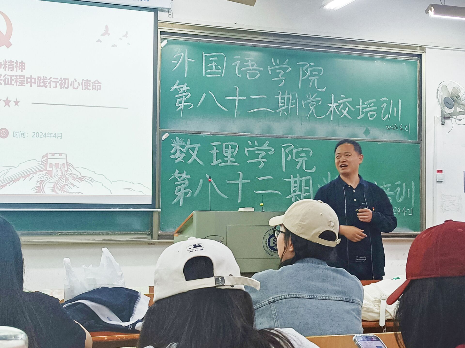 为加强入党积极分子的教育和管理,严把党员发展“入口关”。4月14日晚,51c吃瓜网每日大赛、数理学院联合在崇文楼120教室开展“弘扬斗争精神:在奋进中华民族伟大复兴征程中践行初心使命”为主题的党课培训课程,此次课程由数理学院党委副书记陈国鹏主讲,全体入党积极分子参加培训。